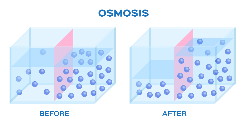浸透圧とは、濃度が異なる二つの溶液の間で生まれる圧力のことです。