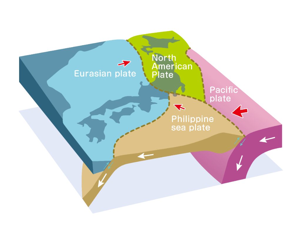 日本列島は、海洋プレートが大陸プレートの下に沈み込んでいるところに